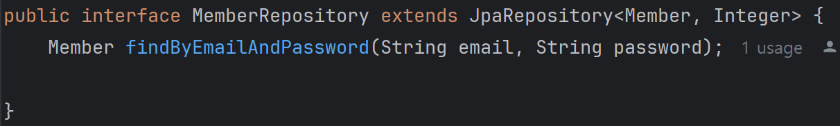 findByEmailAndPassword(String email, String password)처럼 쿼리 메서드를 작성하면